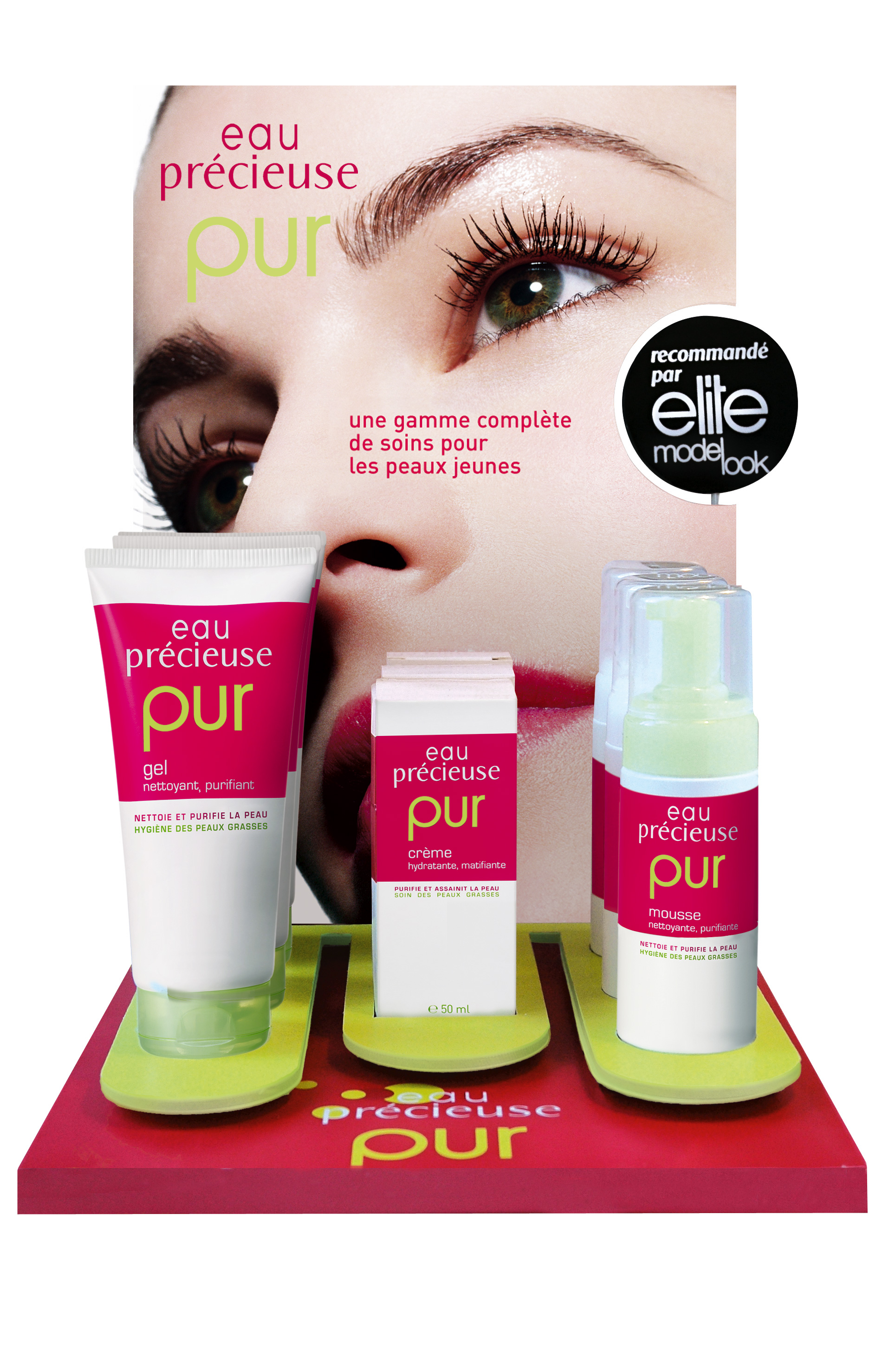 Sur la base de son histoire, la marque est revisitée. La lotion est conservée et une nouvelle gamme cosmétique est développée. Le code couleur, puissant et identitaire, est égayé et rehaussé d’une deuxième couleur ; les mots deviennent trendy. La marque est trans-générationnelle, une stratégie de communication est mise en place sur la base d’un partenariat avec l’agence de mannequins Elite et le concours Elite Model. Une campagne de communication TV, radio, presse, web en découle. La marque reprend ses parts de marché en 2 ans.